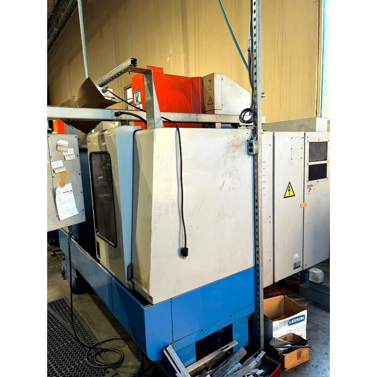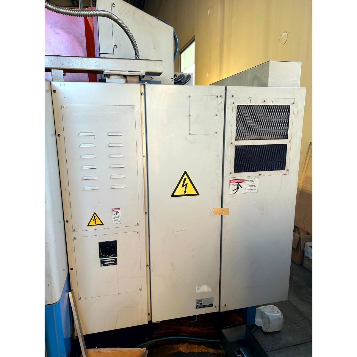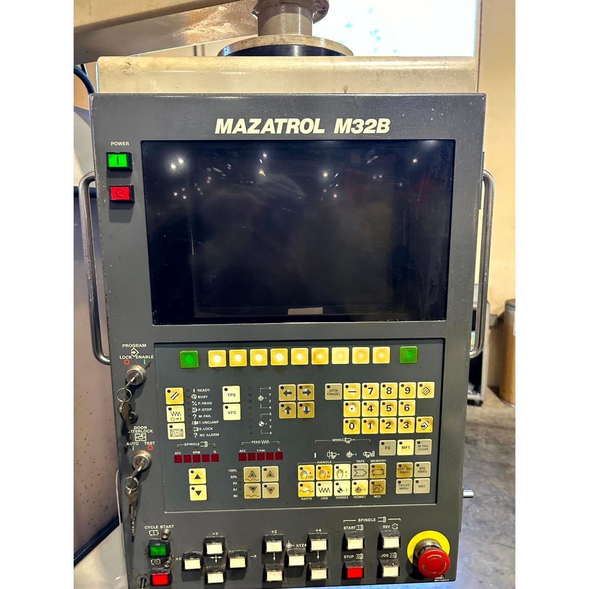 This 1993 MAZAK MTV 414/32 CNC Vertical Machining Center offers reliable precision machining capabilities for manufacturing operations. This established VMC features a robust 10 HP spindle system with 7,000 RPM capacity, delivering excellent performance for medium to heavy-duty machining applications.