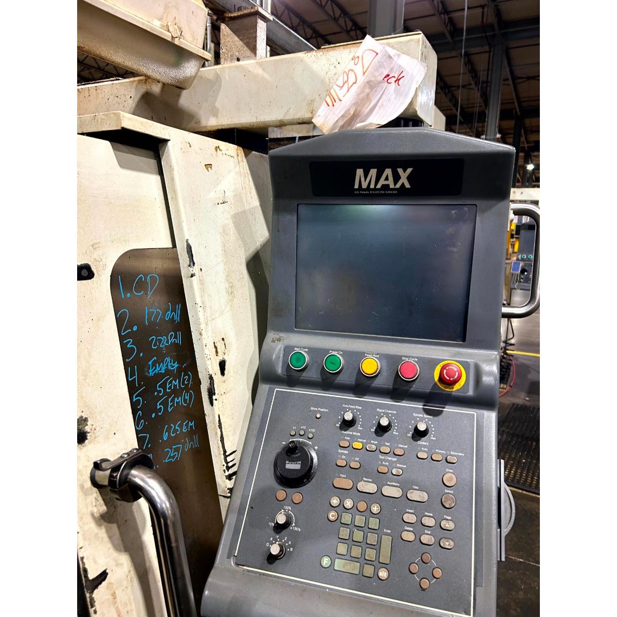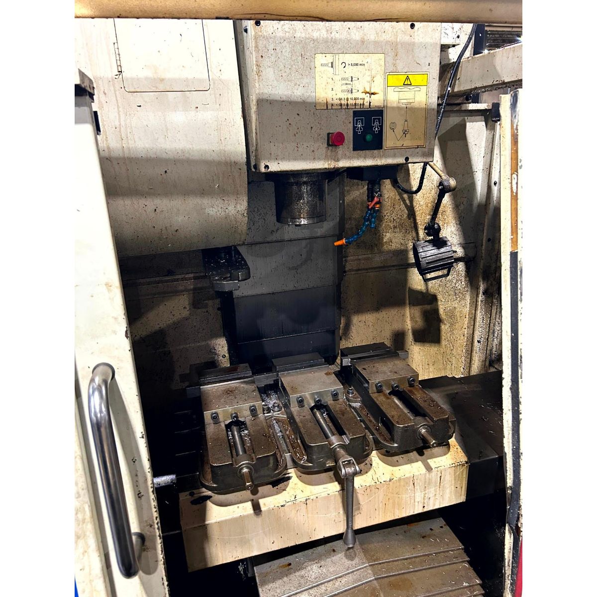 - Spindle: 10 HP motor, 8000 RPM maximum speed, 40 taper