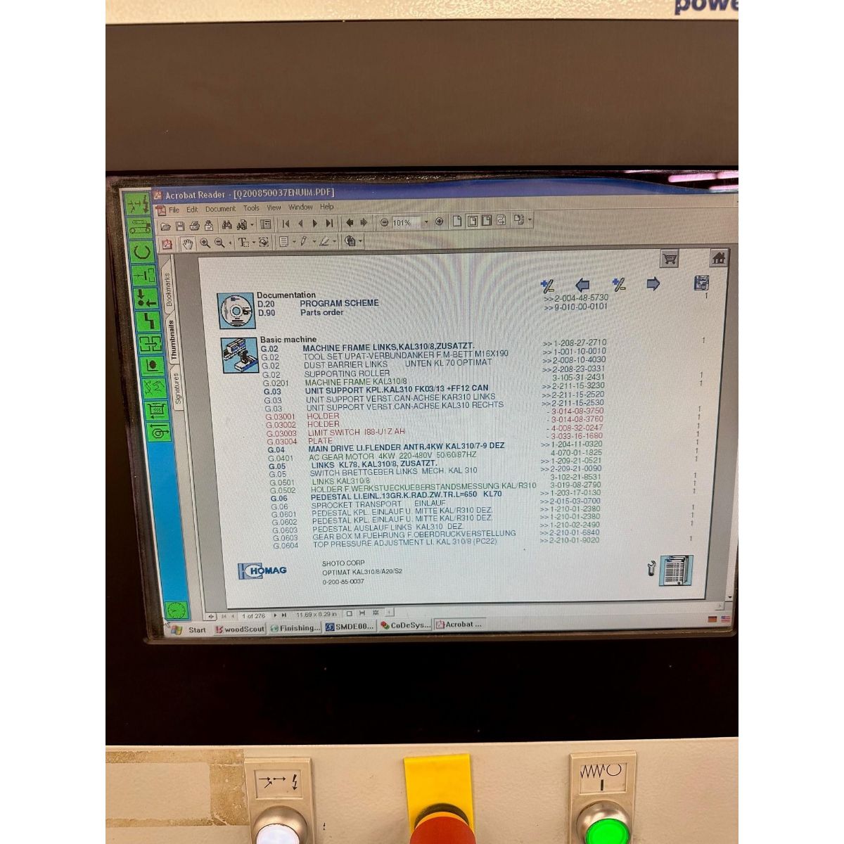 The 2008 HOMAG KAL310 Edgebander delivers professional-grade edge banding performance for woodworking and furniture manufacturing operations. This German-engineered machine features a convenient 950mm (37-13/32″) working level and variable feed speeds from 18-25 m/min, enabling efficient production workflows for cabinet shops, furniture manufacturers, and millwork facilities.