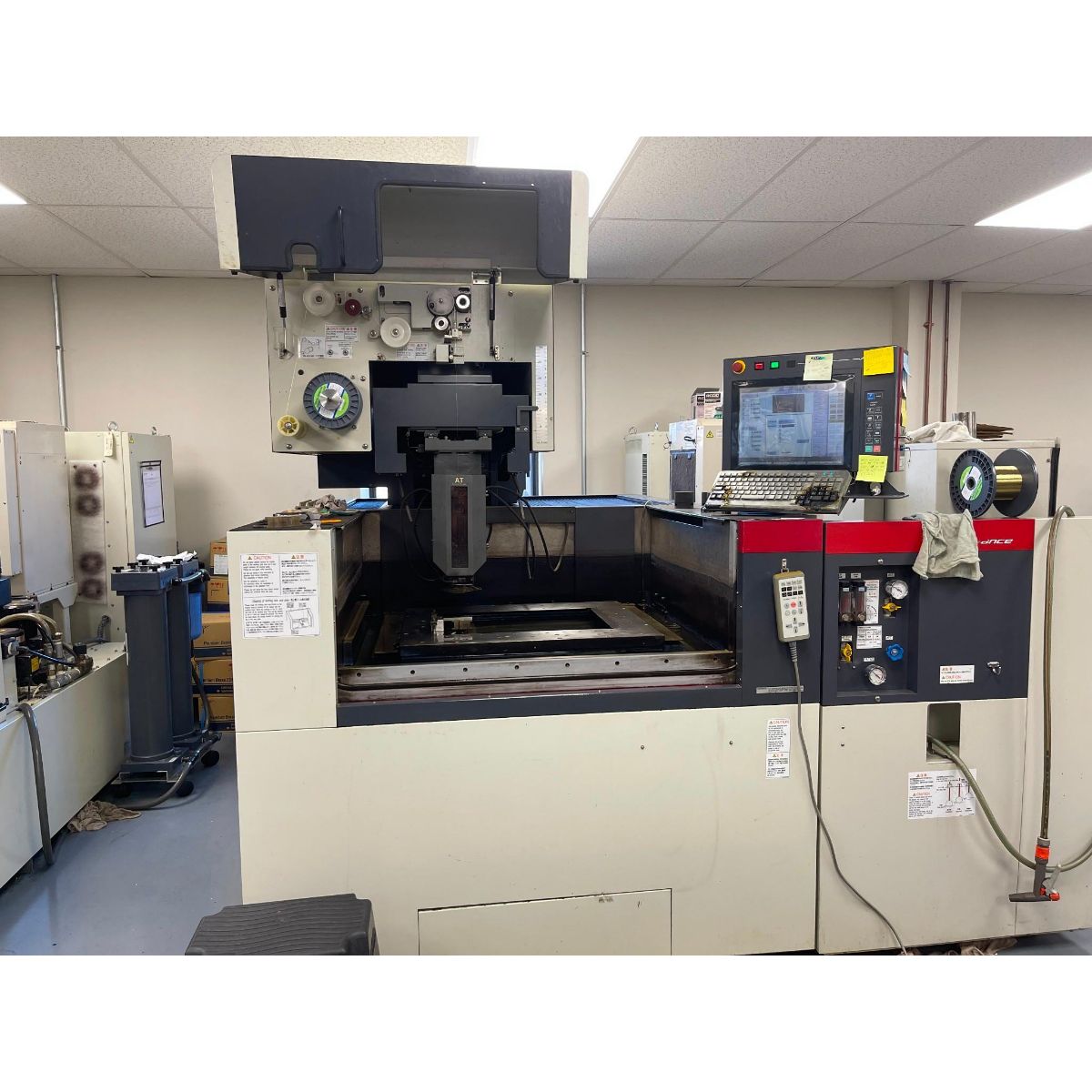 The 2009 Mitsubishi FA20S Advance CNC Wire EDM delivers precision electrical discharge machining capabilities for demanding industrial applications. This advanced wire EDM system features generous work envelope dimensions of 19.6″ x 13.7″ x 11.8″ with U/V axis travel of 3″ x 3″, enabling complex multi-axis machining operations.