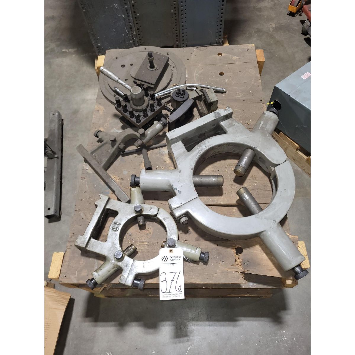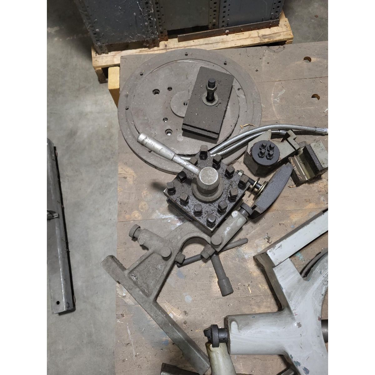 Professional assorted lathe accessories lot featuring a comprehensive collection of essential tooling and components for machining operations. This diverse inventory includes various precision accessories designed to enhance lathe functionality and productivity in industrial and CNC machining environments.