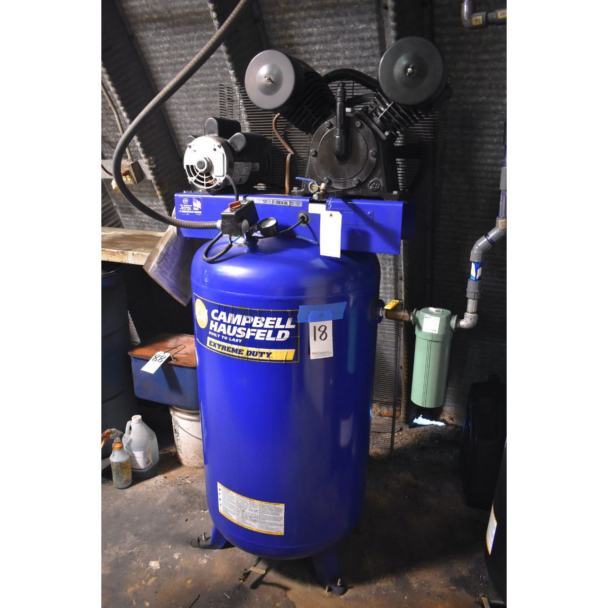 CAMPBELL HAUSFELD 5 HP MODEL DP500002AV TANK MOUNTED AIR COMPRESSOR S/N F01083175, 80 GAL. TANK
