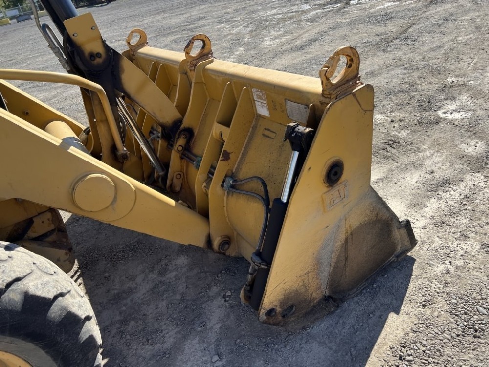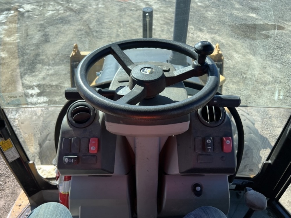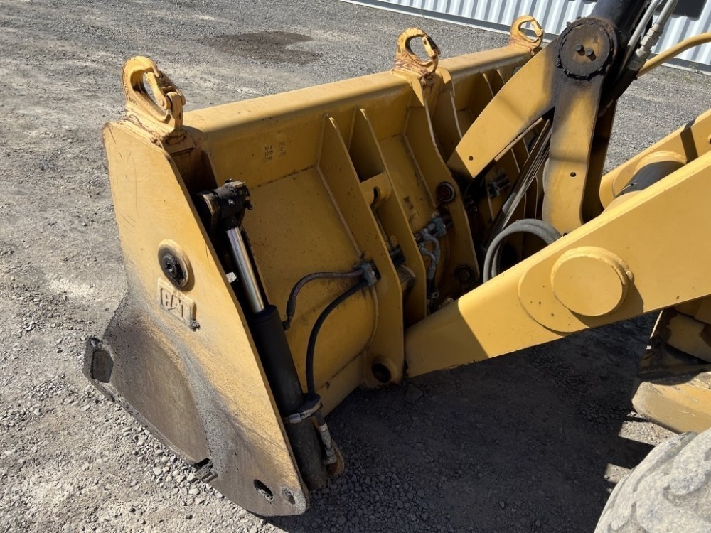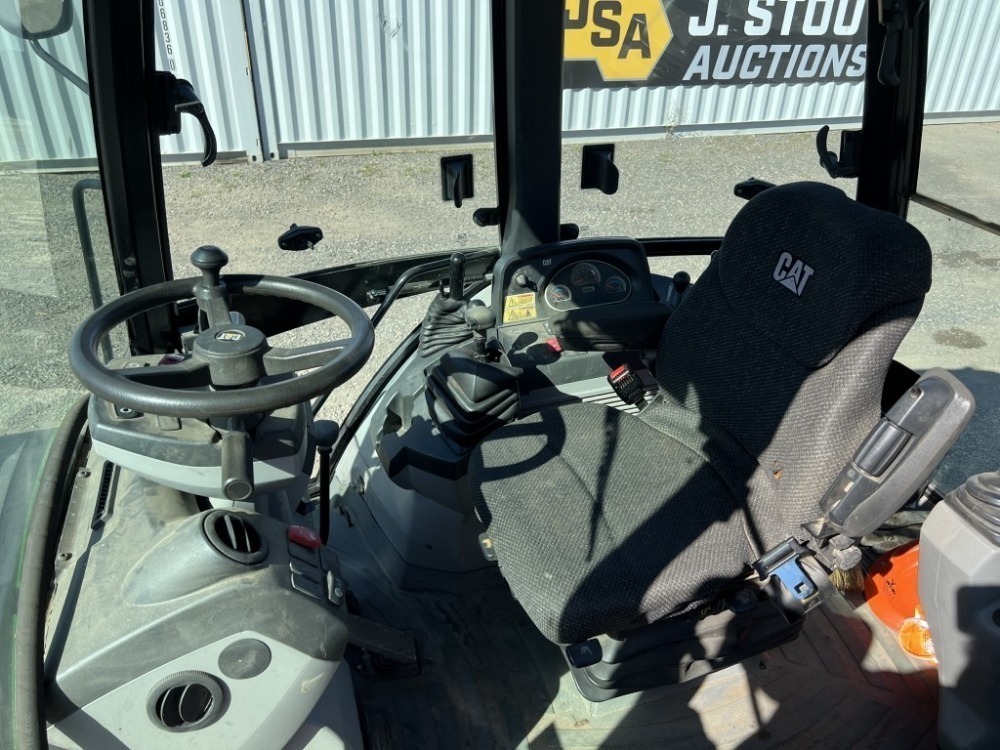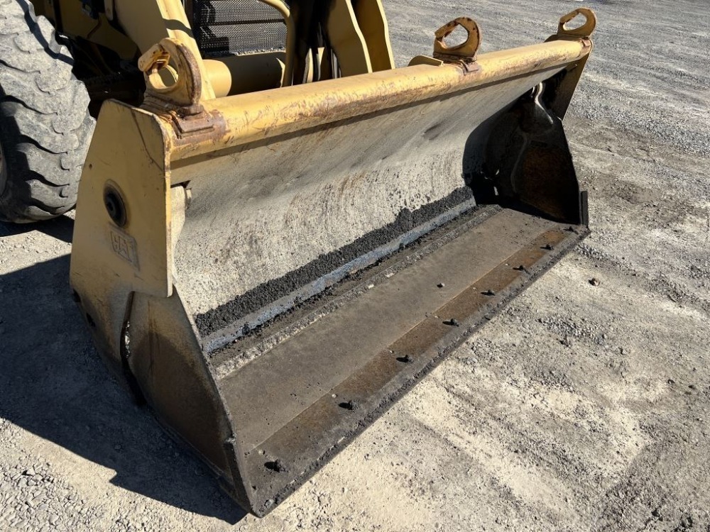 Engine: Caterpillar 3054C Diesel Caterpillar 95″ 4-in-1 bucket, front & rear auxiliary hydraulics, extendable stick, EROPS, cab, heat, AM/FM/CD, 12.5/80-18 front tires, 21L-24 rear tires, Hours: 8,749