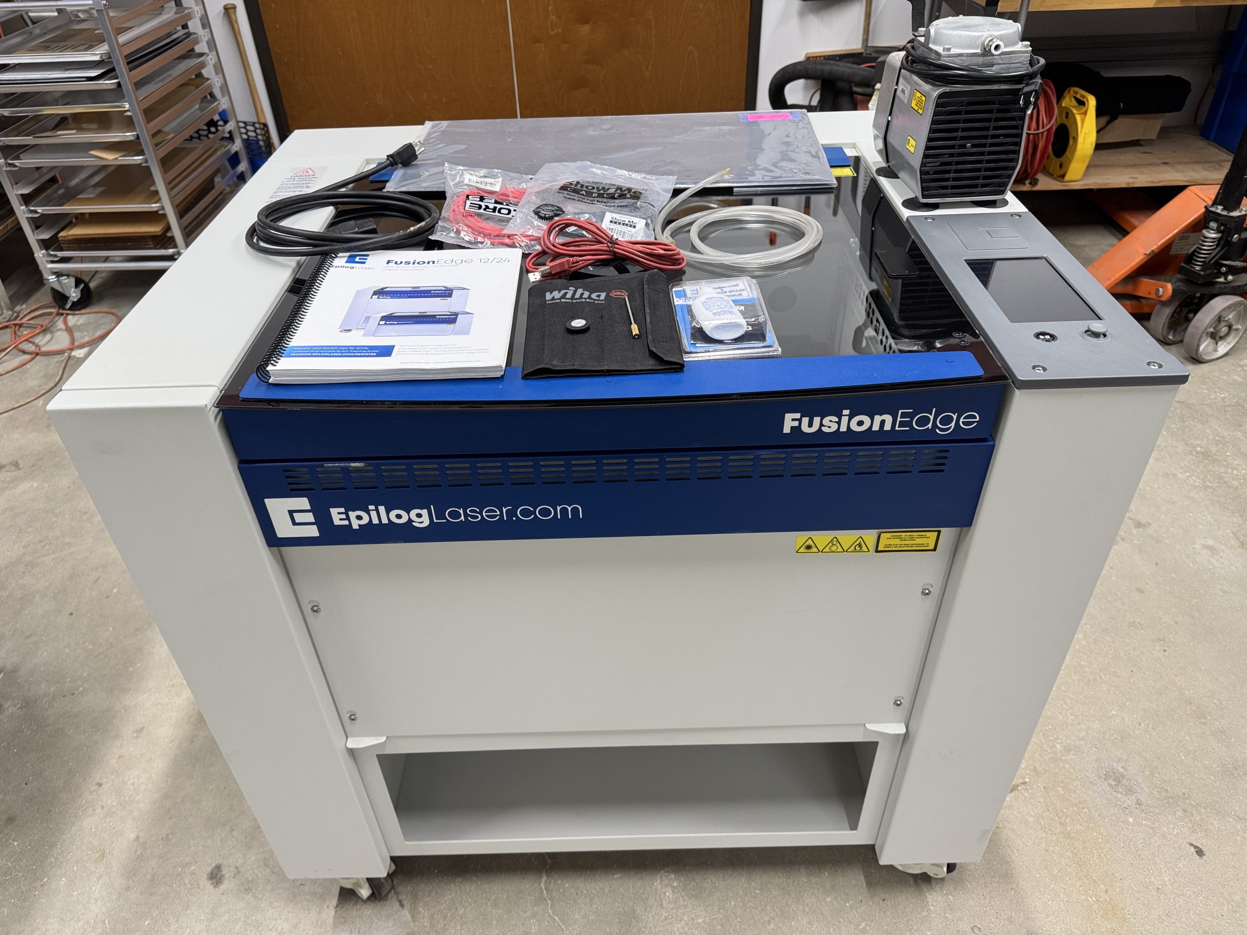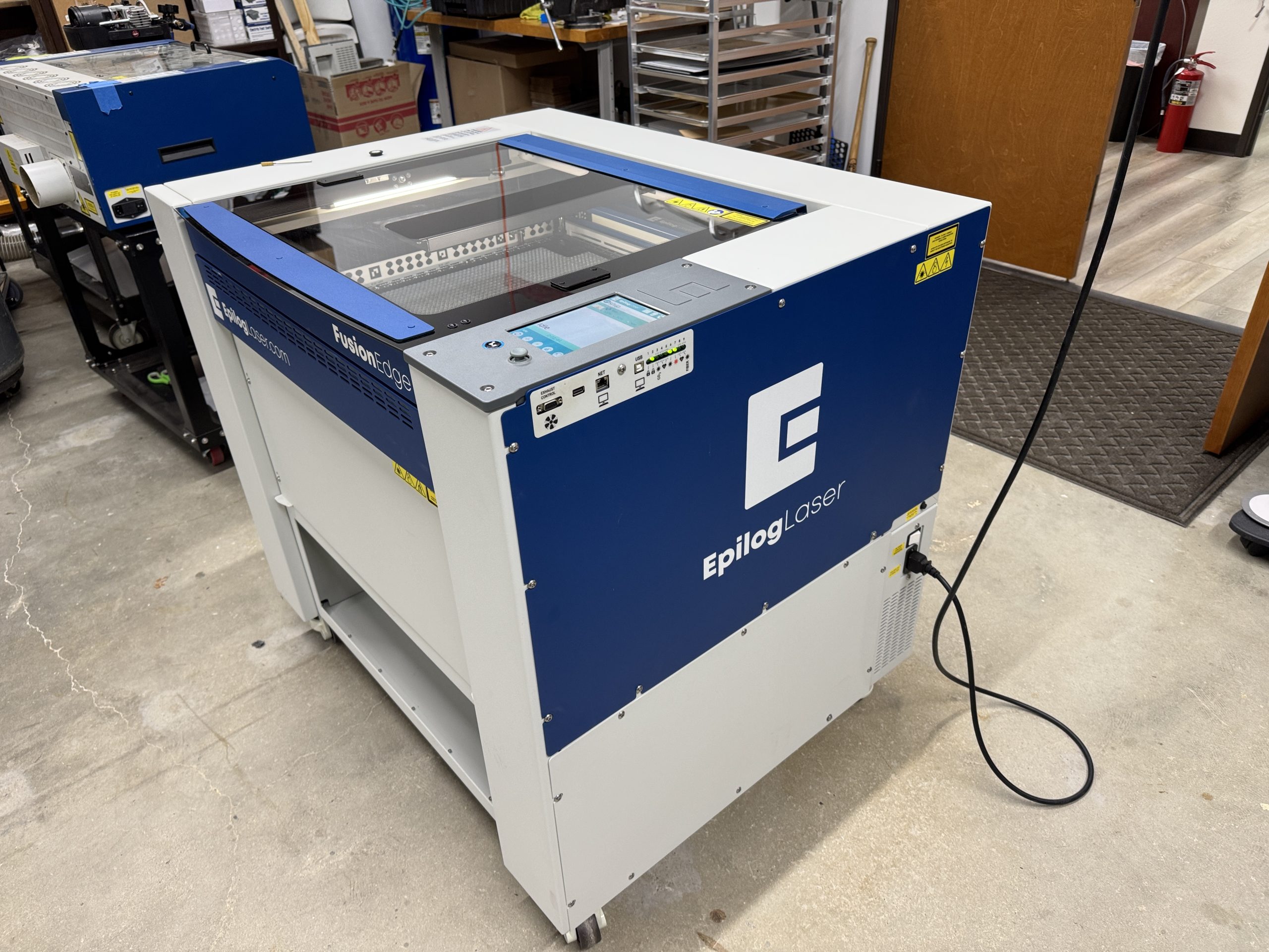 The Epilog Fusion Edge 24 is a desktop laser cutter with 24″ x 24″ work area for holding standard engraving stock material, as well as larger items. The 24″ x 24″ work area and feature set make this laser an affordable choice for those needing more features, increased production, and a more table travel than the Fusion Edge 12.