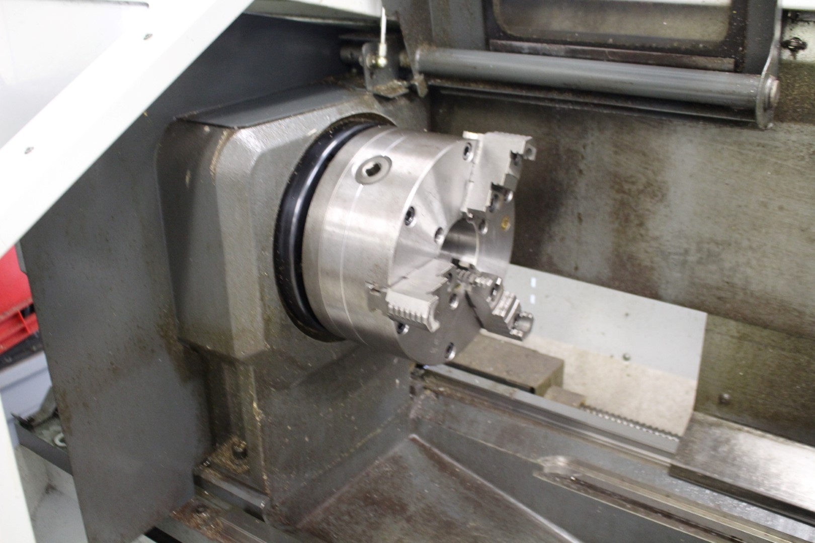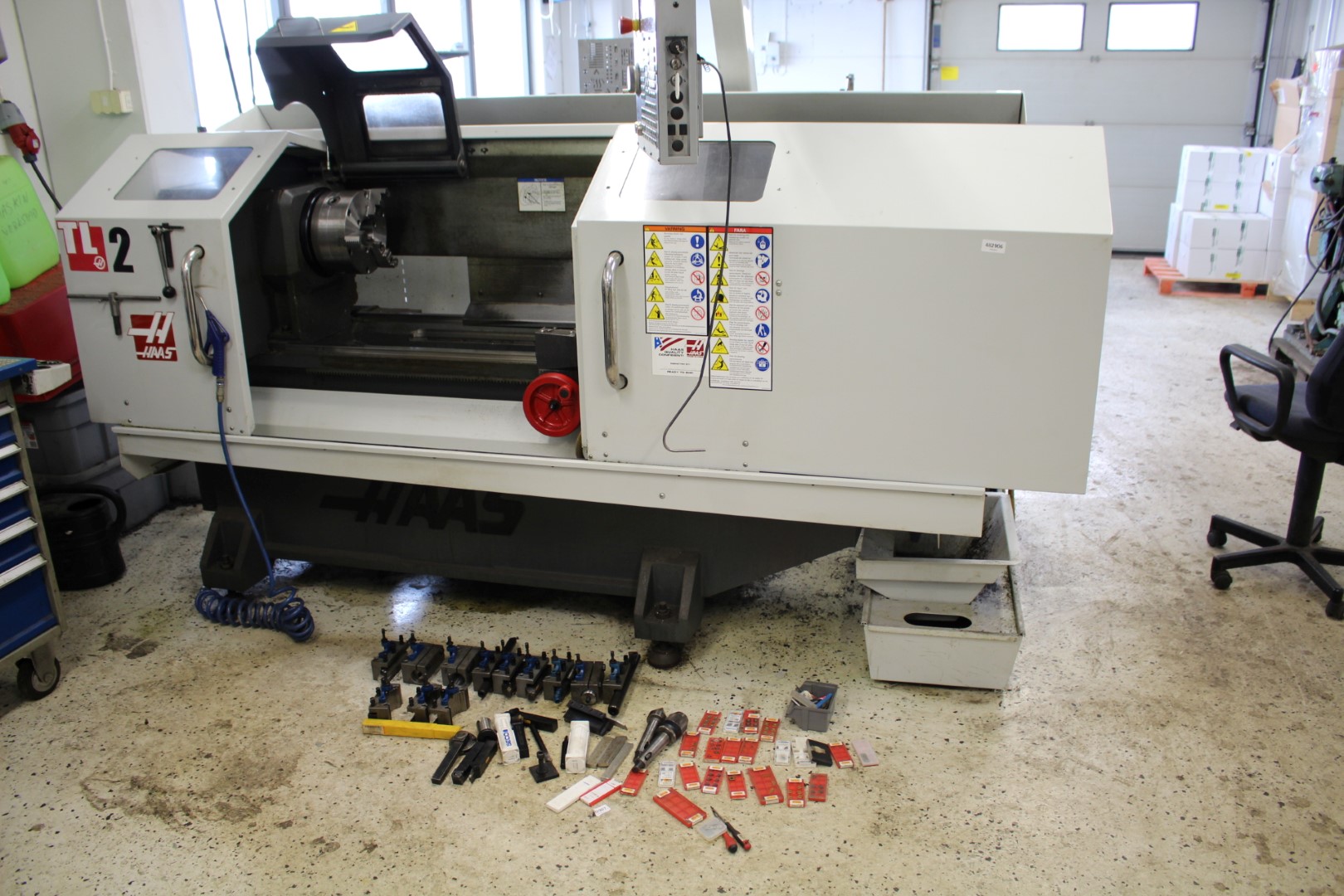 2012 HAAS MODEL TL2 FLAT-BED CNC LATHE; HAAS CNC CONTROL, 8″ 6-JAW CHUCK, TOOLHOLDER, TAILSTOCK, 2-1/2 SPIDLE HOLE, COOLANT