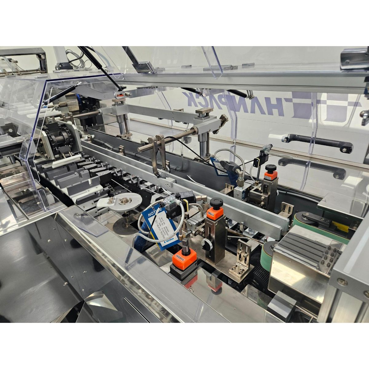 The HANPACK IW-5000TWK Automatic Cartoner is a comprehensive packaging solution designed for high-efficiency industrial operations. This complete system integrates two tray sealers, one cartoner, and one checkweigher to streamline your packaging workflow from start to finish.