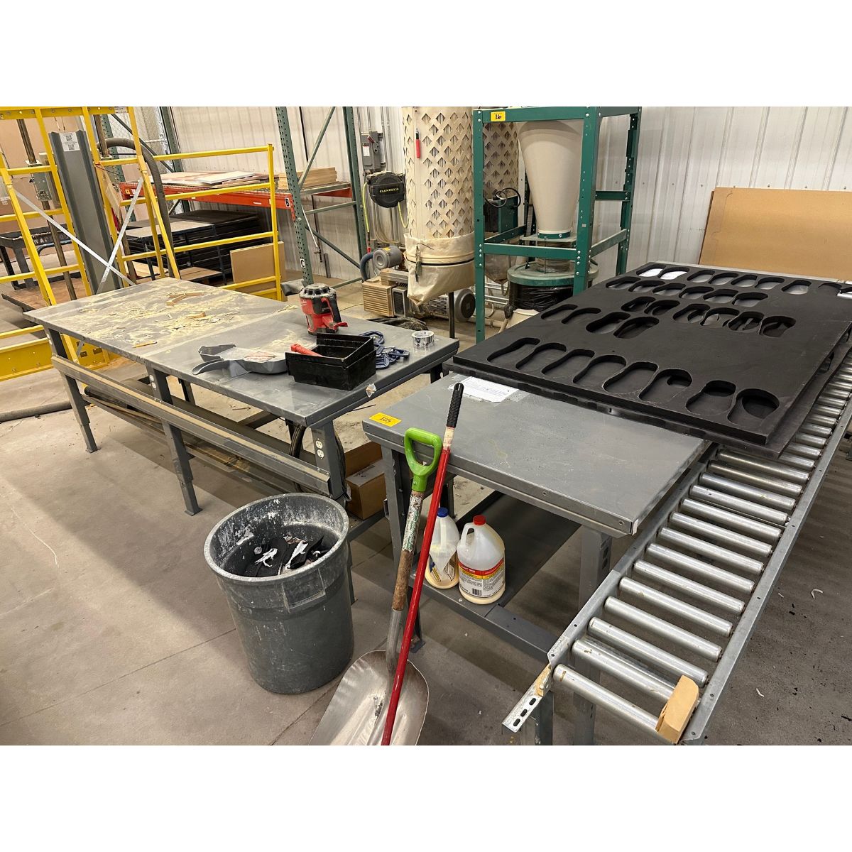 This lot features two heavy-duty metal tables, each measuring 8 feet by 3 feet, sourced from a late model CNC router and media printing facility. These industrial-grade work surfaces are built to withstand demanding manufacturing environments and provide excellent value for machine shops, fabrication facilities, and industrial operations.