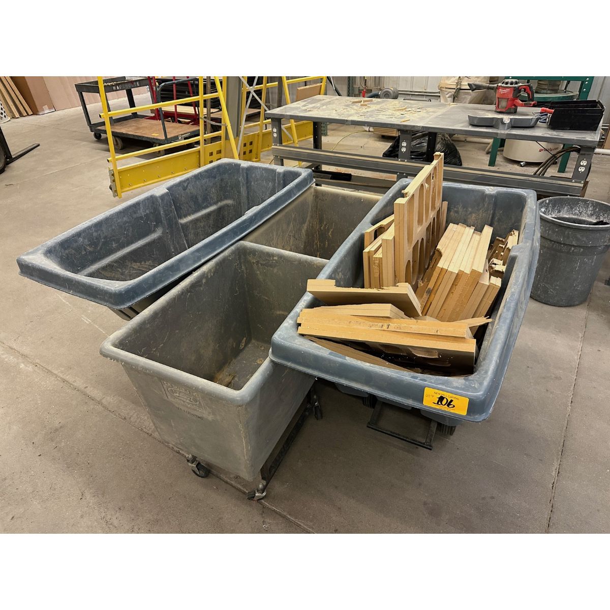 This lot includes four high-quality rolling garbage bins designed for efficient waste management in industrial and commercial facilities. These durable bins feature smooth-rolling wheels for easy transportation and positioning throughout your workspace.