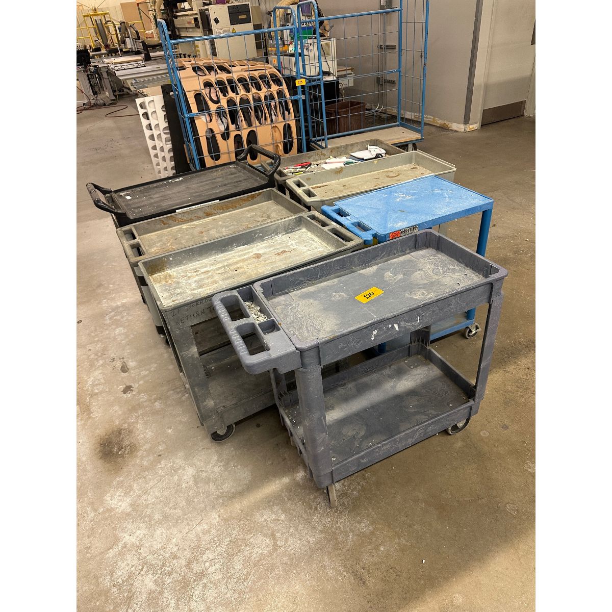 This lot of seven utility carts offers exceptional value for industrial facilities, warehouses, and manufacturing operations seeking to enhance material handling efficiency. These late-model utility carts are ideal for transporting tools, parts, and materials throughout your facility with ease and reliability.