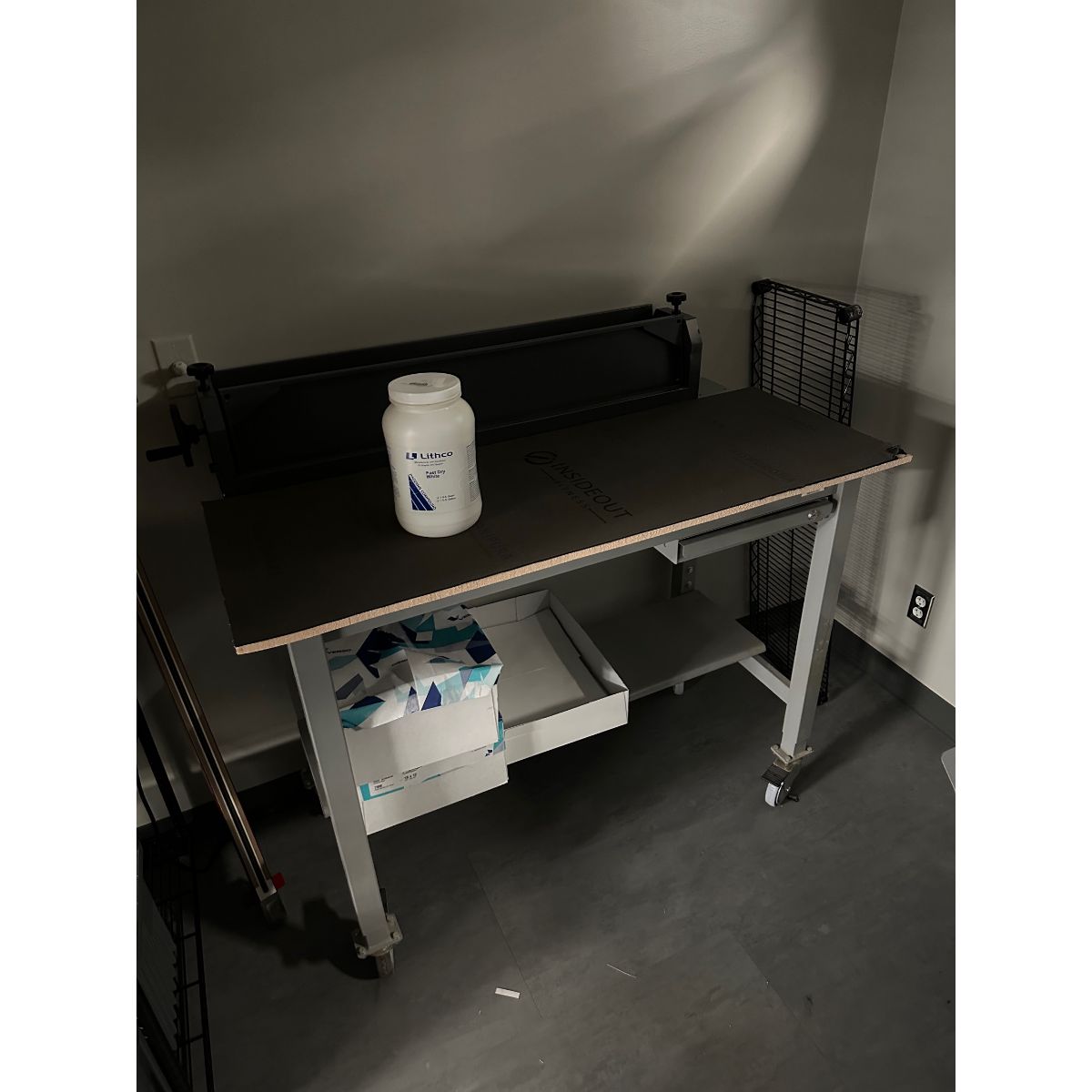 Lot of Items in Room Not Individually Lotted – Table, Toner, Wire Rack | Required Rigging and Loading Fee for Simple Loading: $400