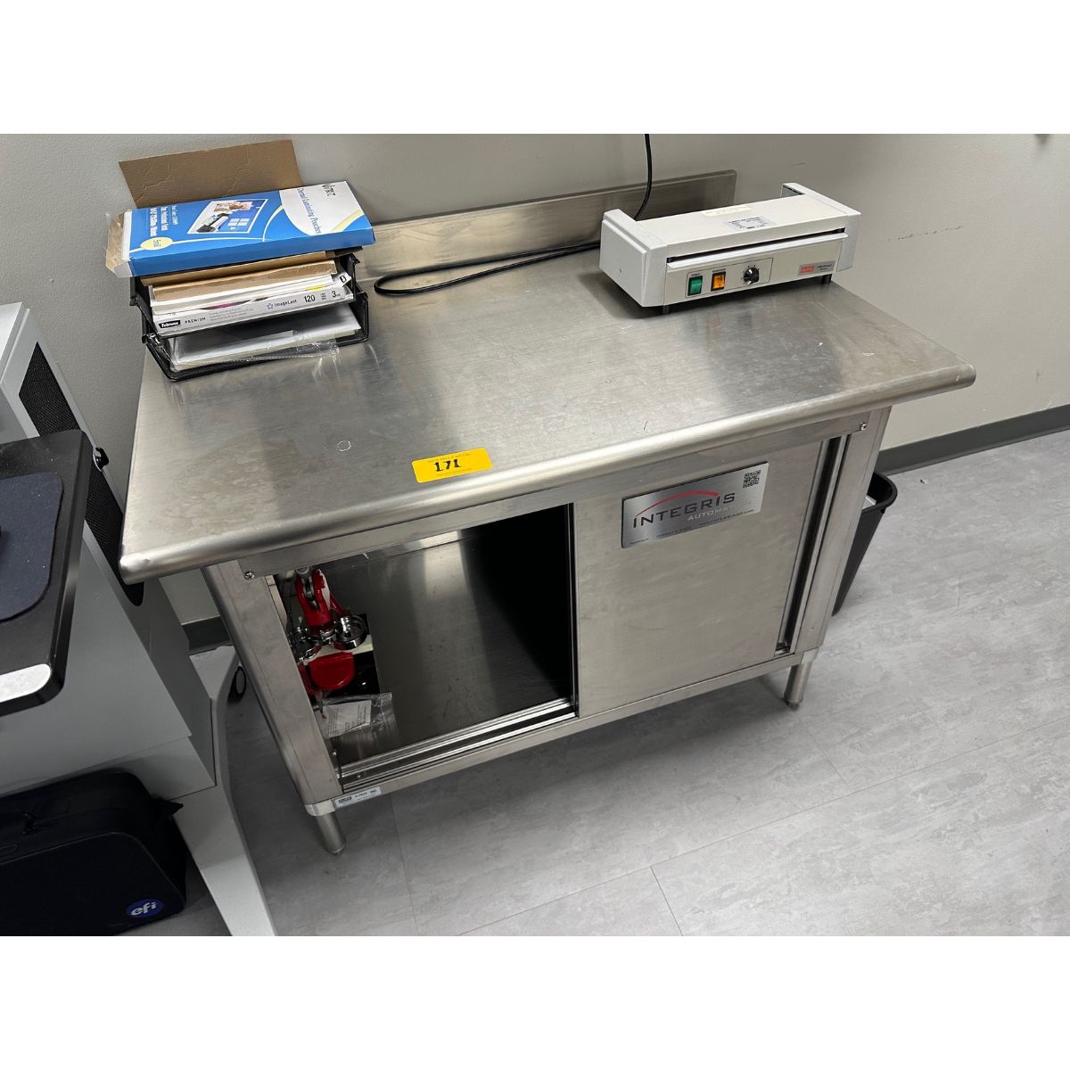 Lot of Stainless Steel Cabinet with Worktop and Husky Adjustable Height Table | Required Rigging and Loading Fee for Simple Loading: $100