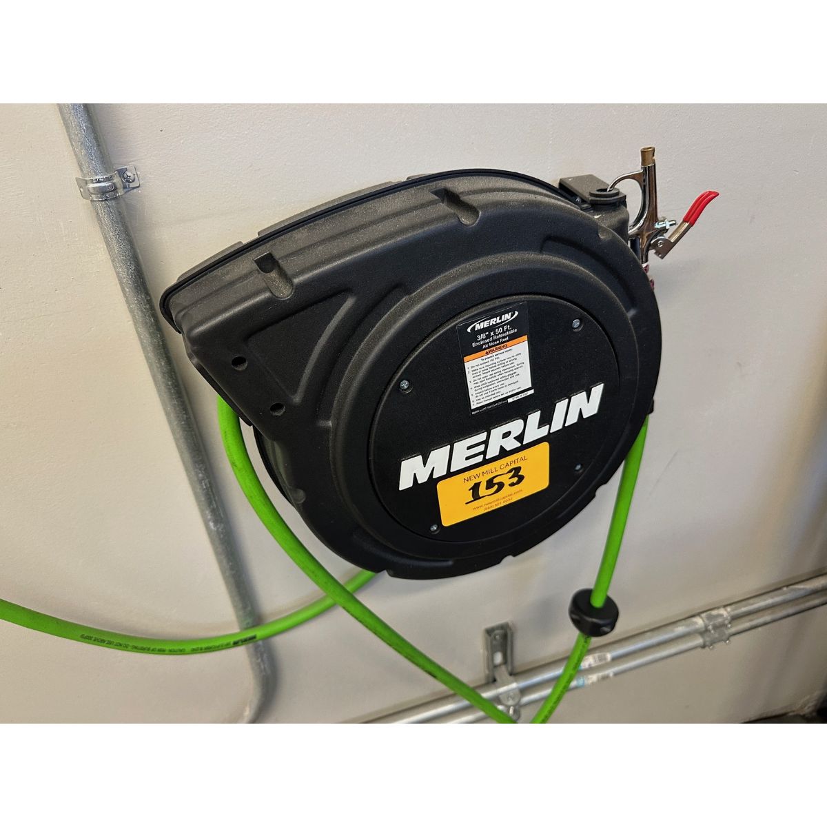 Merlin 3/8″ x 50′ Enclosed Retractable Air Hose Reel | Rig Fee $25