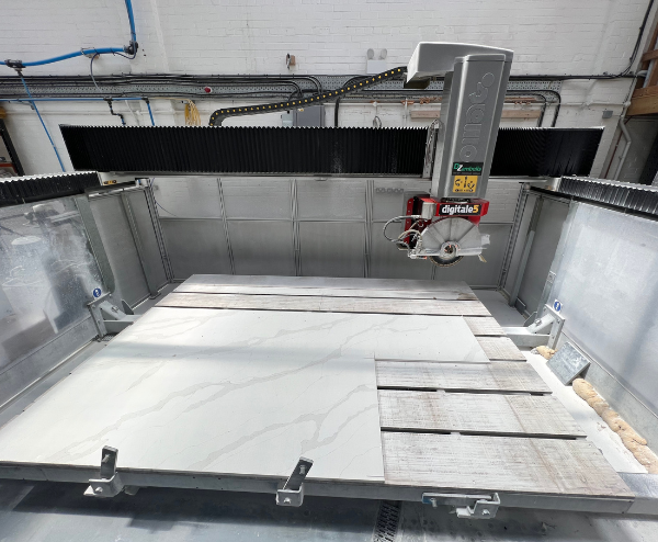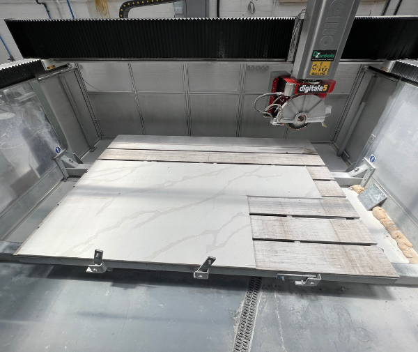 Versatility: This 5-axis bridge saw combines cutting, drilling, polishing, and shaping functions in one machine. It works seamlessly with granite, marble, quartz, porcelain, and ceramic. Its monobloc design, paired with a twist head, ensures precision and flexibility for complex tasks.