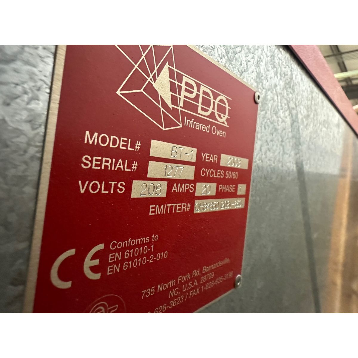 PDQ Infrared Oven – Model BT-1, S/N 1277 | Rig Fee $175