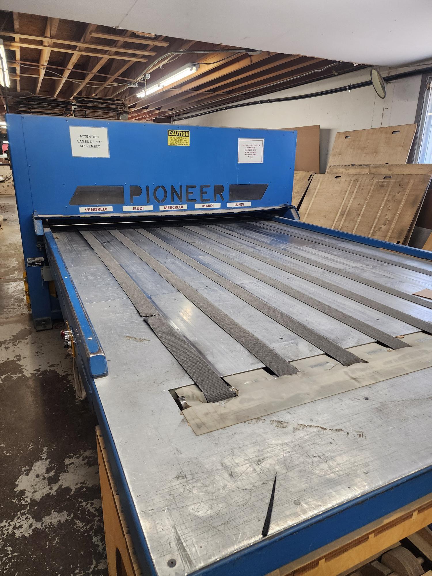 Used Pioneer Flatbed Die Cutter 80″ wide powered tables coated top roller