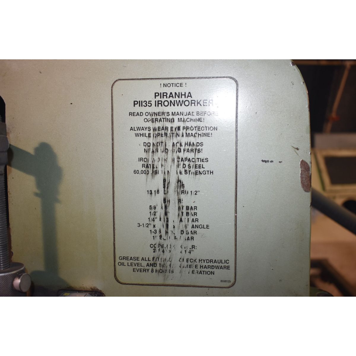 The Piranha 35 Ton Model PII-35 Ironworker delivers exceptional versatility and power for metal fabrication operations. This reliable hydraulic ironworker combines multiple metalworking functions in one compact unit, making it an essential tool for structural steel fabrication, maintenance shops, and manufacturing facilities.