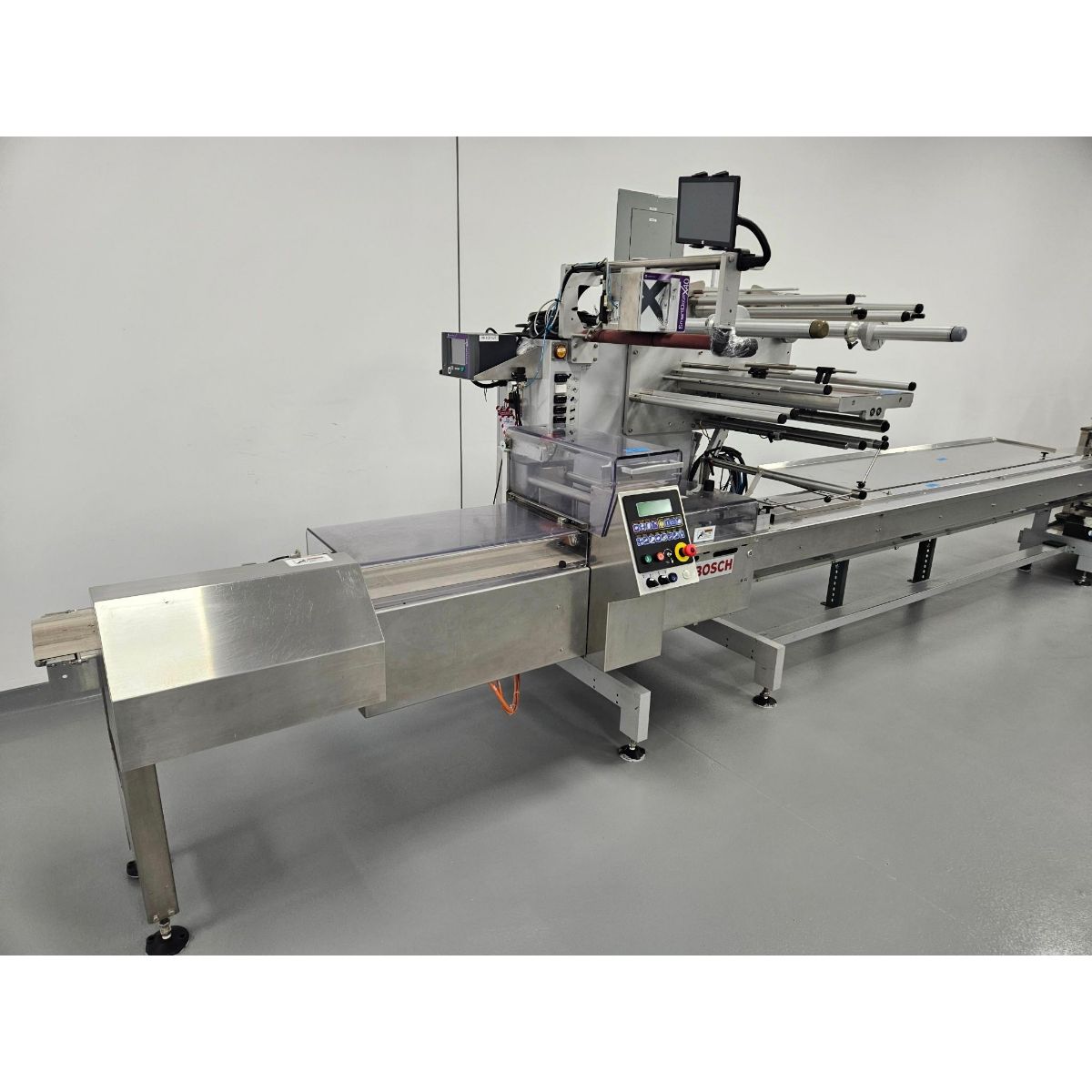 BOSCH PACK 201 POUCHING MACHINEBY INFEED CONVEYOR, EACH FLIGHT CONVEYS A PRODUCT TO A FORMER WHICH WRAPS THE PRODUCT WITH ROLLED FILM, AND SEALS THE PRODUCT TO COMPLETELY WRAP AND SEAL THE PRODUT WITH ALUMINUM POUCH TO GIVE IT MOISTURE BARRIERUTILITIES: 3PH 220/30A/60, 6BAR5600MM X 1400MM X 1800MM (LXWXH)All specifications are assumed to be correct but must be confirmed by the purchasing entity.Item Location - Monroe Township, NJ