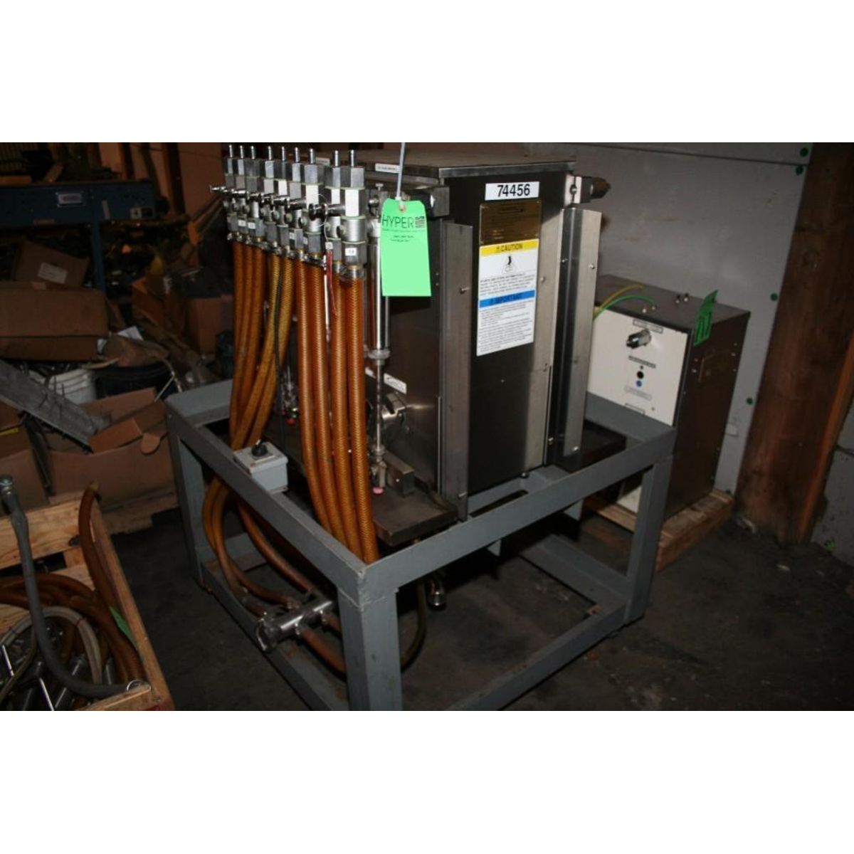FILAMATIC MODEL DAB-32-4 4 HEAD VOLUMETRIC FILLING UNITFILLING SPEED UP TO 24RPM OR 24 CYCLES PER MINUTE.IDEAL FOR APPLICATIONS THAT REQUIRE DISPENSING TWO DIFFERENT LIQUIDS AT DIFFERENT FILL VOLUME316 SS PRODUCT CONTACT PARTS THAT DELIVER FILL ACCURACY IN THE ± ½ % RANGE.EXPLOSION-PROOF MODEL IS AVAILABLE FOR USE IN HAZARDOUS LOCATIONS. REQUIRES 30-40CFM OF CLEAN, DRY, COMPRESSED AIR.FILL VOLUMES FROM 10ML TO 1100ML DEPENDING ON THE SIZE OF PUMP REQUIRED.INCLUDES A HEAVY-DUTY, VARIABLE SPEED 1 HP DRIVE THAT PROVIDES OVER 3000 IN/LBS. OF TORQUE. AVAILABLE DRIVE PACKAGES FROM 12 RPM-24 RPM. THE LOWER THE RPM RATE THE MORE TORQUE THE MACHINE DELIVERS.316 SS PRODUCT CONTACT PARTS THAT DELIVER FILL ACCURACY IN THE ± ½ % RANGE.REQUIRES 30-40CFM OF CLEAN, DRY, COMPRESSED AIR.220V OPERATION, COMPRESSED AIR MAY BE REQUIRED FOR SOME APPLICATIONS.All specifications are assumed to be correct but must be confirmed by the purchasing entity.Item Location - Milwaukee, WI