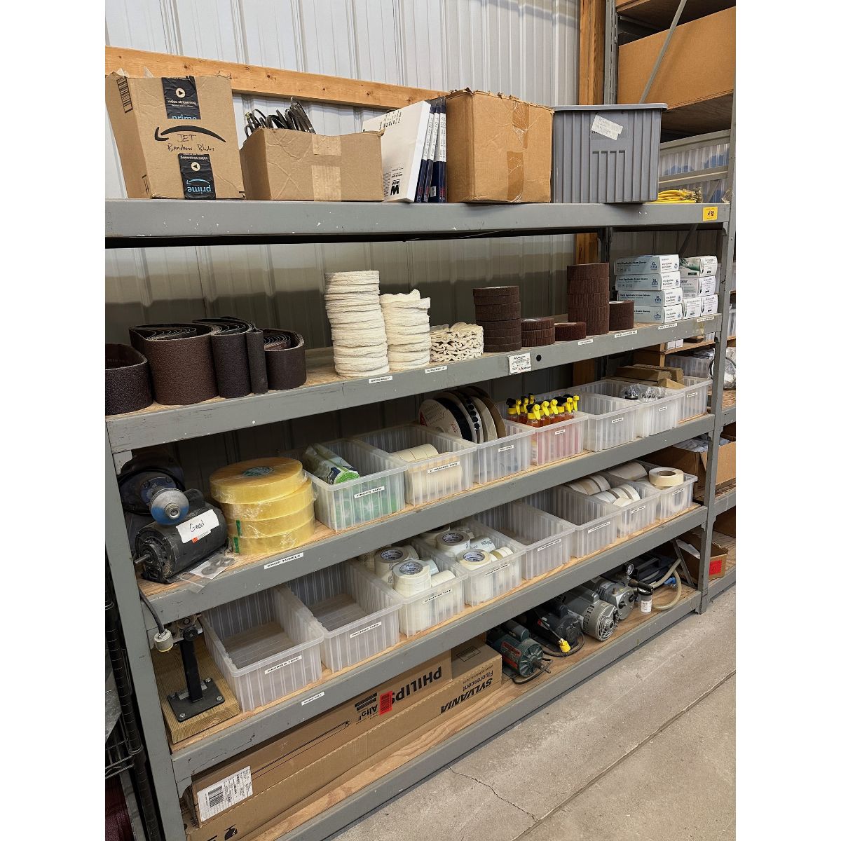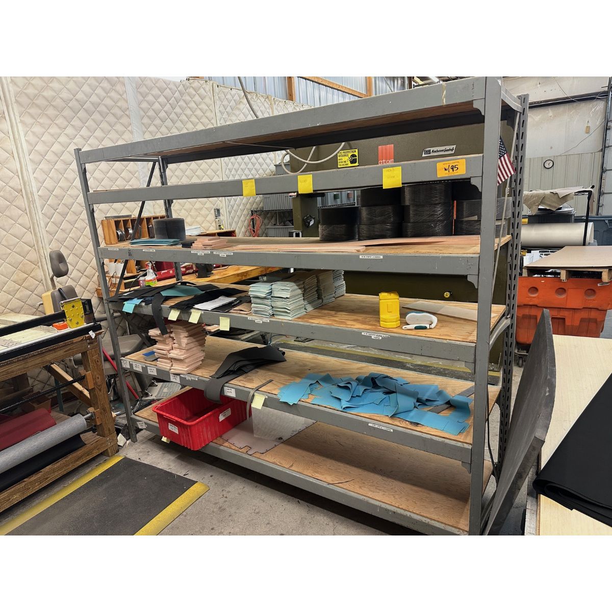 Lot of Teardrop Shelving - (2) 12' x 26" Uprights - (3) 7' x 26" Uprights - (32) 8' Crossbeams with 3" Face and 1.25" Thickness | Required Rigging and Loading Fee for Simple Loading: $175