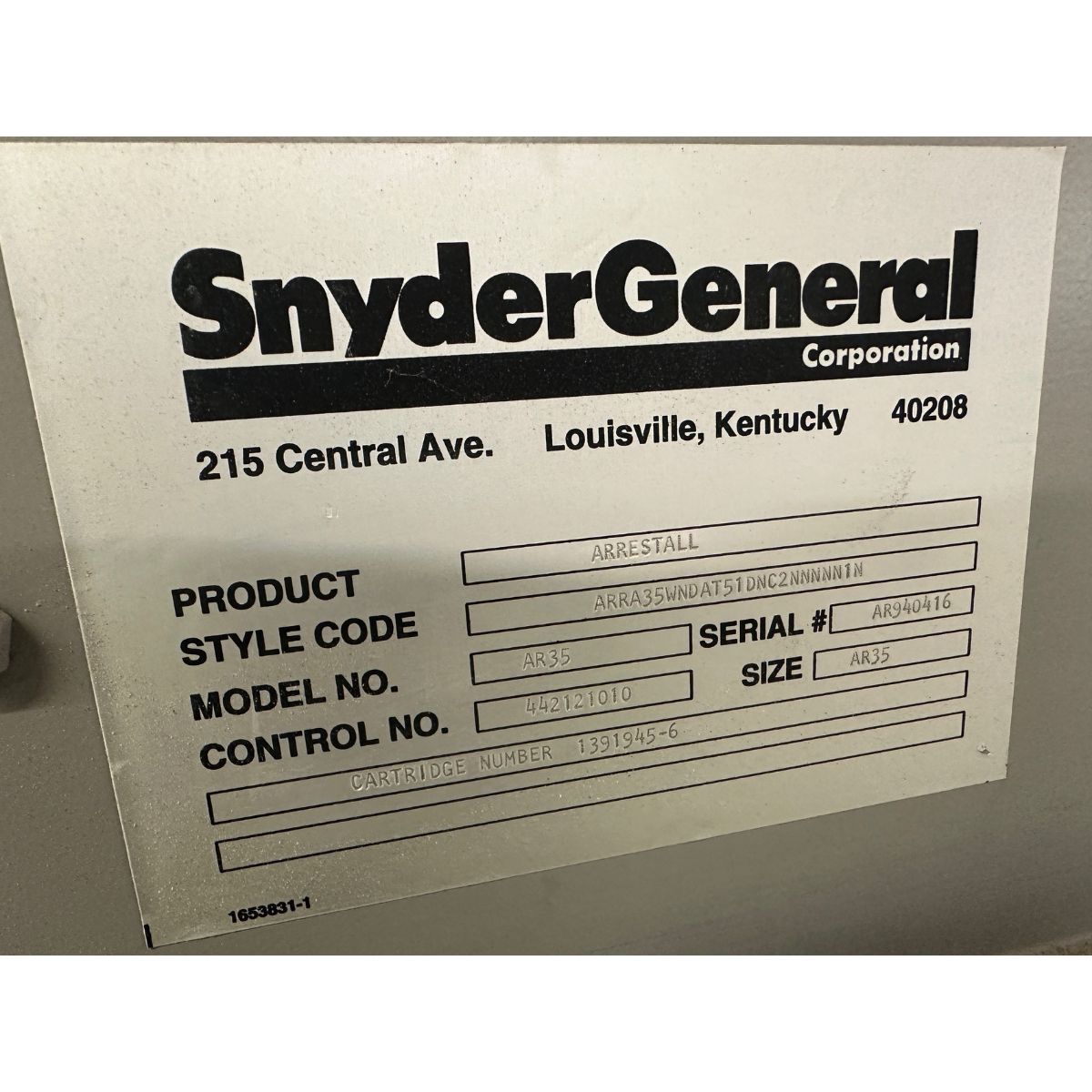 Snyder General Arrestall Model AR35 Dust Collector - S/N AR940416 | Required Rigging and Loading Fee for Simple Loading: $600