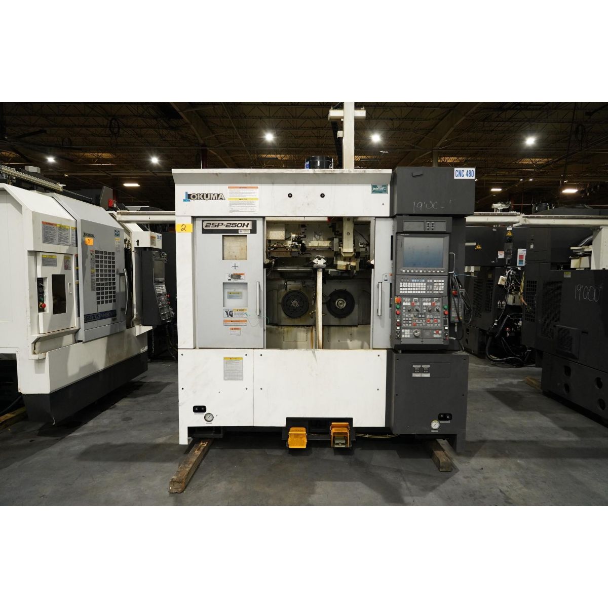 2017 OKUMA 2SP-250H TWIN SPINDLE TWIN TURRET CNC TURNING CENTERMAX TURNING DIAMETER: 8.66″MAX TURNING LENGTH: 5.91”TRAVEL X-AXIS: 5.91”Z-AXIS: 6.10”SPEED RANGE: 50-4500 RPMTURRET TYPE: V12 NCMOTOR SPINDLE DRIVE: 15/10 HPEQUIPPED WITH:OKUMA OSP-P300LA CONTROLROBOT LOADERCHIP CONVEYORTRANSFORMER220/480, 3 PHASE, 60 HZ, 55.1 KVA, FULL LOAD CURRENT 144.7 / 66.3 A, LARGEST MOTOR RATING 48 A, INTERRUPTING CAPACITY 30 / 10 KA, SCCR OF CONTROL PANEL 10 KA**HAVE INSPECTION REPORTS FROM GOSIGER**MACHINE POWERED ON WITHOUT ANY MAJOR ALARMSHAD TO SET THE COOLANT LOW INPUT AND AIR PSI INPUT IN ORDER TO MOVE THE AXISMACHINE HAD A BATTERY LIFE ALARM DUE TO BEING OUT OF SERVICE, BACKUPS PERFORMEDTHE MACHINE HAD A BROKEN LOAD CABLE TRACK ON TOP AND WAS MISSING THE CHUCKS R-L SIDEAXIS AND SPINDLE OPERATE NORMALLYLOADER AXIS OPERATE NORMALLYMACHINE WAS TEST WITHOUT STOCKER TABLE INSTALLED AND APPEARS THAT WHEN IT WAS IN OPERATION THE PARTS WERE PLACED ON A CONVEYOR. INBOUND OUTBOUND.All specifications are assumed to be correct but must be confirmed by the purchasing entity.Item Location - Franklin, IN