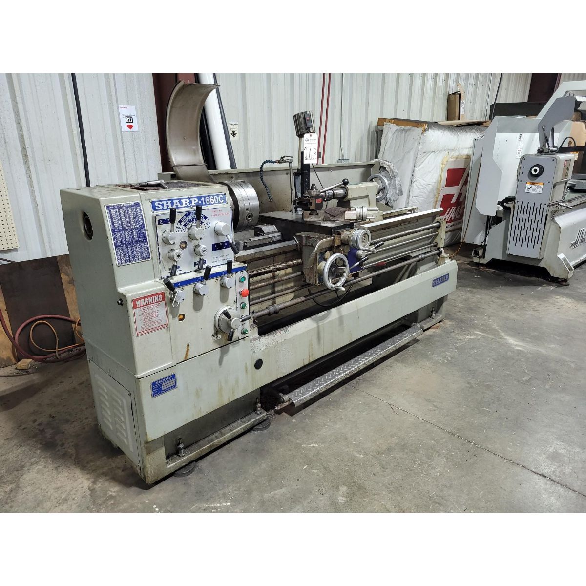 1996 SHARP 1660C 60" CENTER 7.5 HP GEARED-HEAD GAP-BED ENGINE LATHESN: 5810012SPECIFICATIONSSWING OVER BEDWAYS: 16"SWING IN REMOVEABLE GAP: 24-3/8"SWING OVER CROSS SLIDE: 8-3/4"HOLE THRU SPINDLE: 2-1/8"DISTANCE BETWEEN CENTERS: 60"SPINDLE NOSE: D1-6" CAMLOCKSPINDLE SPEED RANGE (12): 20 - 2000 RPMENGLISH THREADING RANGE: 4 - 56 TPIMETRIC THREADING RANGE : .5 - 7 MMLONGITUDINAL FEED RANGE: .002" - .032" IPRCROSS FEED RANGE: .001" - .0094" IPRTAILSTOCK SPINDLE TAPER : #4MTTAILSTOCK SPINDLE TRAVEL: 5"APPROX FLOOR SPACE: 105"L X 30"W X 48"HAPPROX WEIGHT: 3,750 LBSAll specifications are assumed to be correct but must be confirmed by the purchasing entity.Item Location - Cookeville, TNNO OUT OF STATE MANUFACTURING SALES TAX EXEMPTION