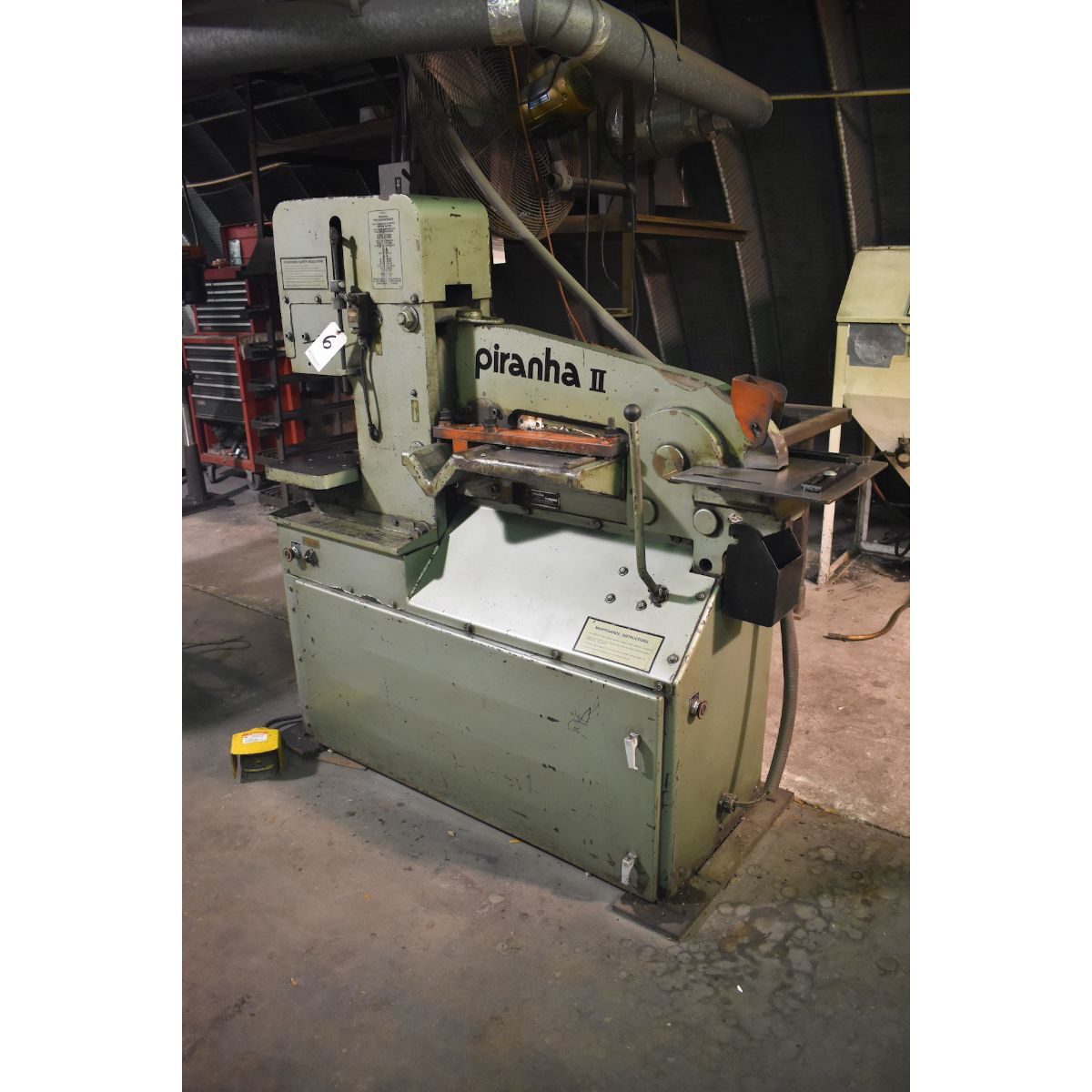 PIRANHA 35 TON MODEL PII-35 IRONWORKER S/N 77 (1992/93), PUNCH: 3/16 IN. DIAMETER THROUGH 1/2 IN., FLAT BAR SHEAR: 5/8 IN. X 6 IN., 1/2 IN. X 8 IN., 1/4 IN. X 13 IN., ANGLE SHEAR: 3-1/2 IN. X 3-1/2 IN. X 5/16 IN., COPING/NOTCHING: 2-1/4 IN. X 3 X 1/4 IN.