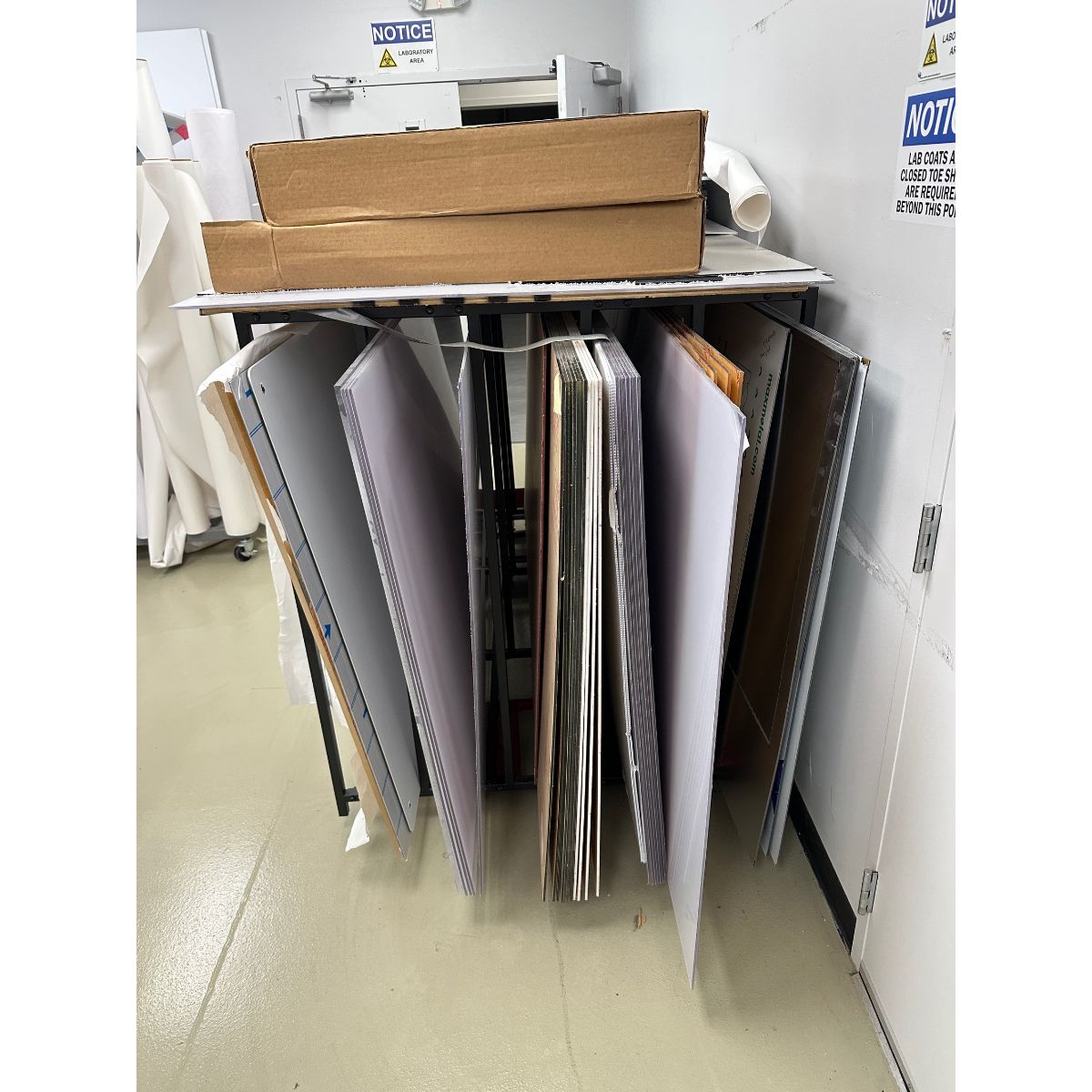 Lot of All Print Supplies in Room - Acrylic Sheets, Foamboards, Roll Paper, Sheet Storage Rack, Printer Paper | Required Rigging and Loading Fee for Simple Loading: $100