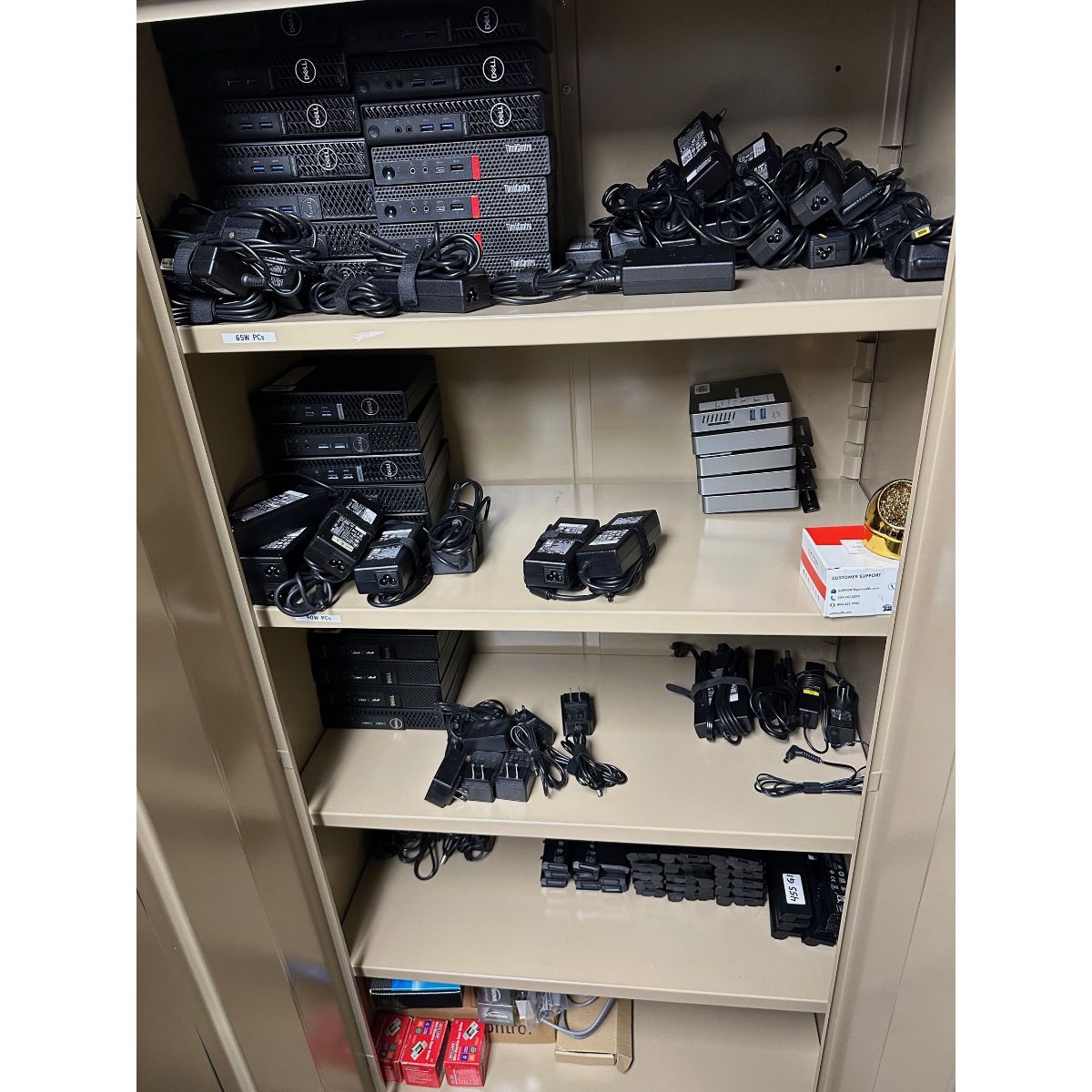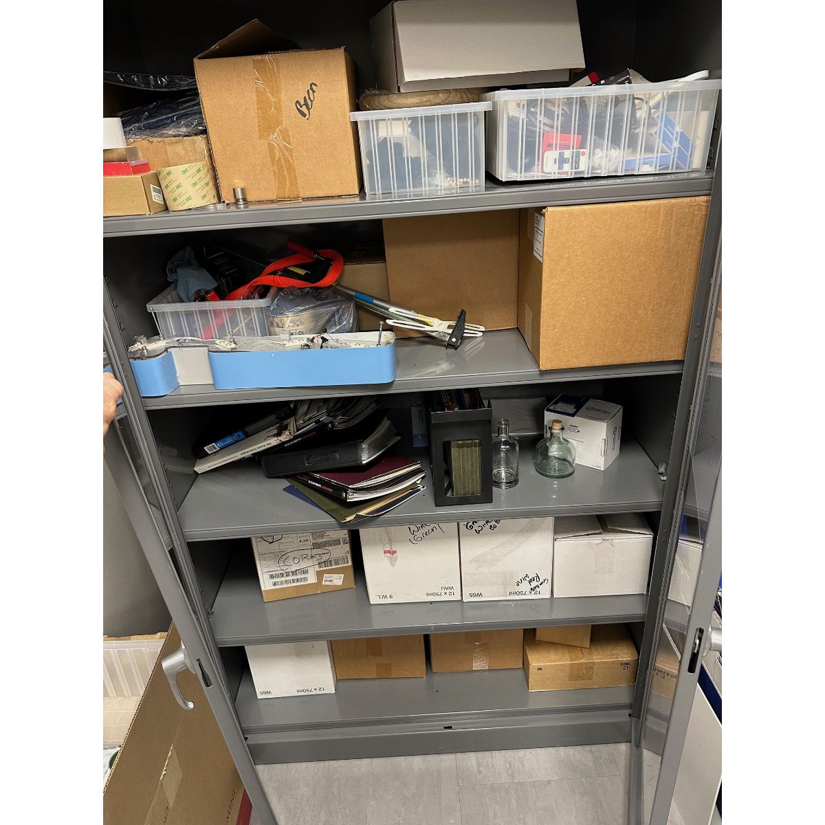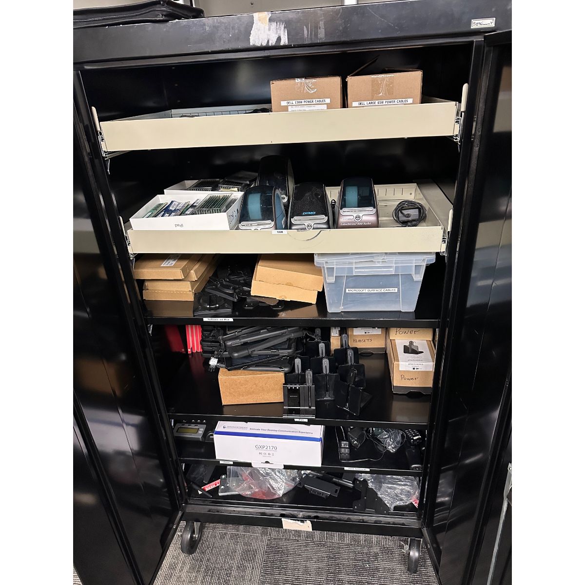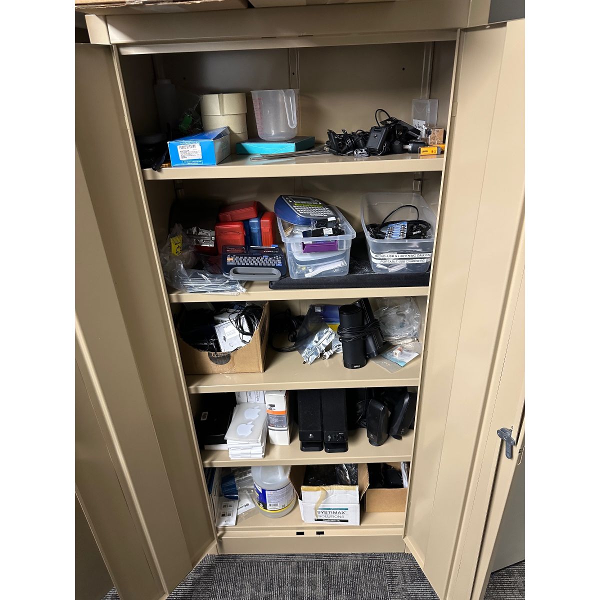 Lot of 2-Door Cabinet with Office Supply (Computer and Networking Equipment Not Included) | Required Rigging and Loading Fee for Simple Loading: $50