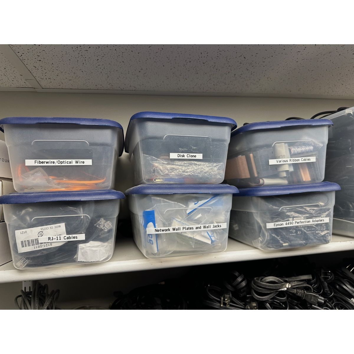Lot of All Items in IT Room Not Individually Lotted - Power Cords, Network Cables, Printers and Parts | Required Rigging and Loading Fee for Simple Loading: $200