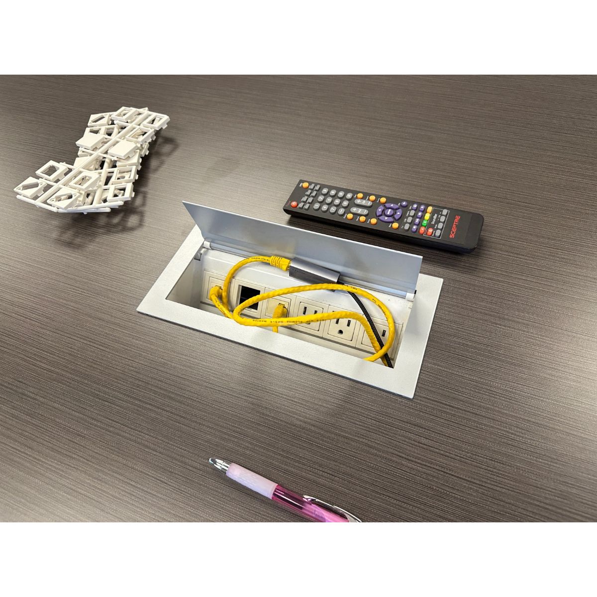 Lot of Conference Table (Approx. 5' x 14') with (10) Chairs and Polycom Conference Hub | Required Rigging and Loading Fee for Simple Loading: $250