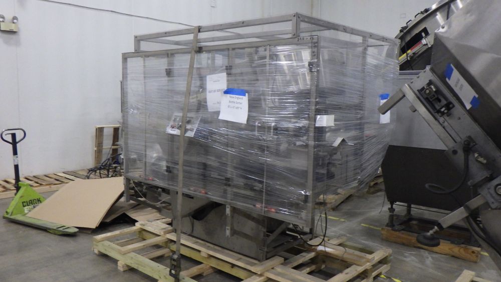 New England Packaging Machinery Model NEHCP250AJ Compact Bottle Unscrambler. Speeds up to 400 CPM Depending on Container Size and Configuration.